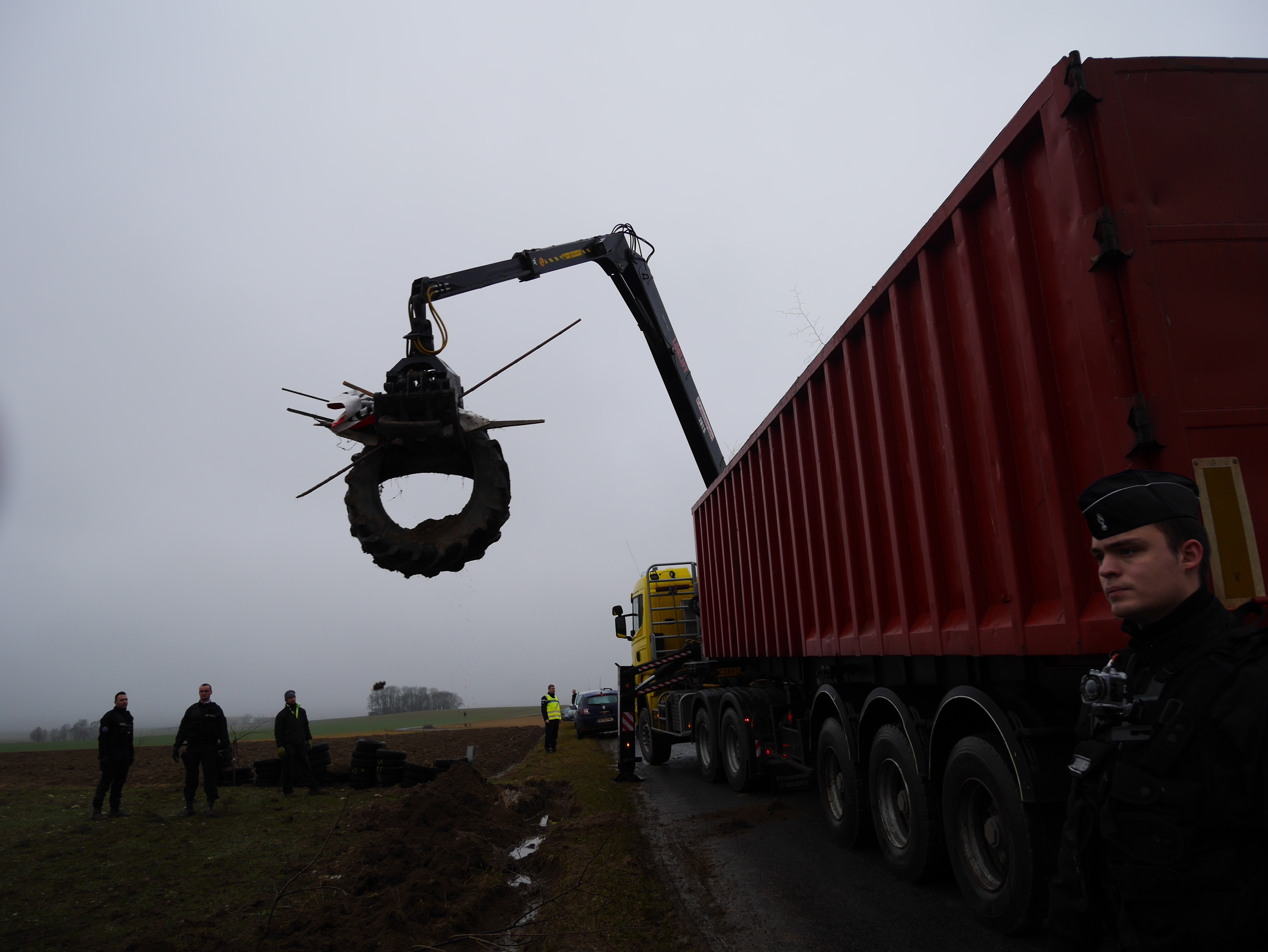 Au même moment, des gendarmes débarquent à l’ancienne gare de Lumeville. ils s’en prennent aux barricades agricoles qui matérialisaient notre occupation.