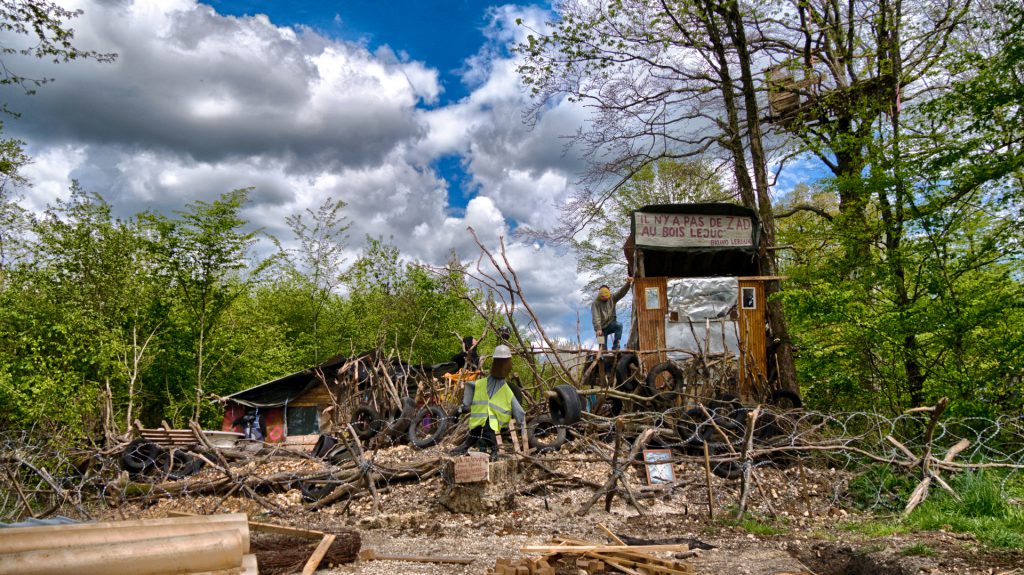Nous aurons eu 2 mois de répit, pendant lequel de nouvelles personnes se sont installées, des cabanes construites, des maisons investies, 1500 m² de patates et d’oignons plantés sur des terres squattées, des balades naturalistes et des week-end de sorcières, etc, etc. Maintenant, ça recommence. Après l’été d’urgence et la première expulsion, l’été indien et la réoccupation, l’hiver déter, les menaces sur la forêt et la manif au pied du labo, nous entrons dans le printemps résistant ! Les hélicoptères ont repris leurs survols quotidiens – même en plein milieu de la nuit. Les patrouilles de flics, vautours malfaisants, tournent dans les villages, rendant furieux certain-e-s habitant-e-s. Les feuilles ont poussé un peu partout, et même sur certaines barricades : la Meuse est belle et vous accueille dés maintenant.
