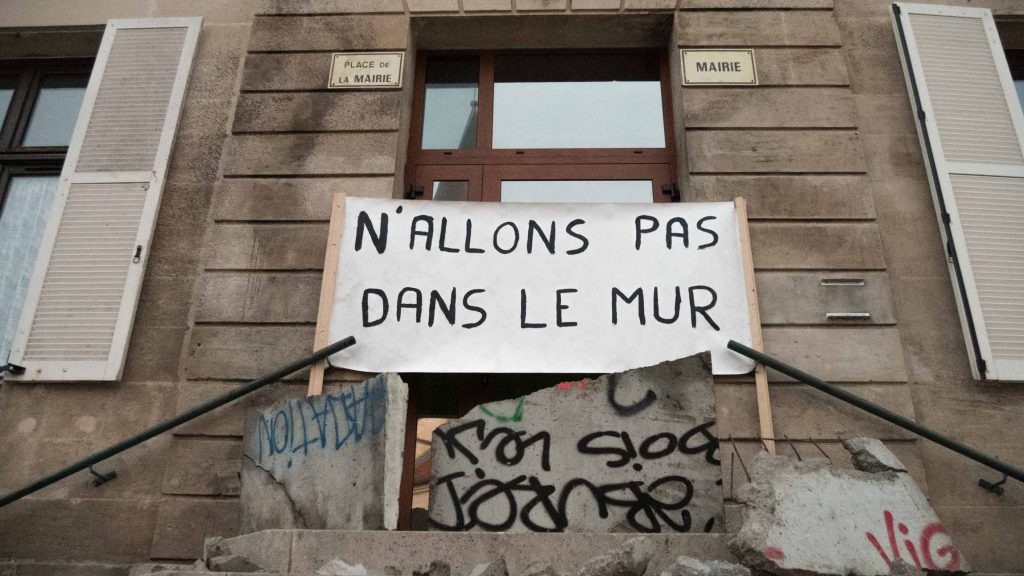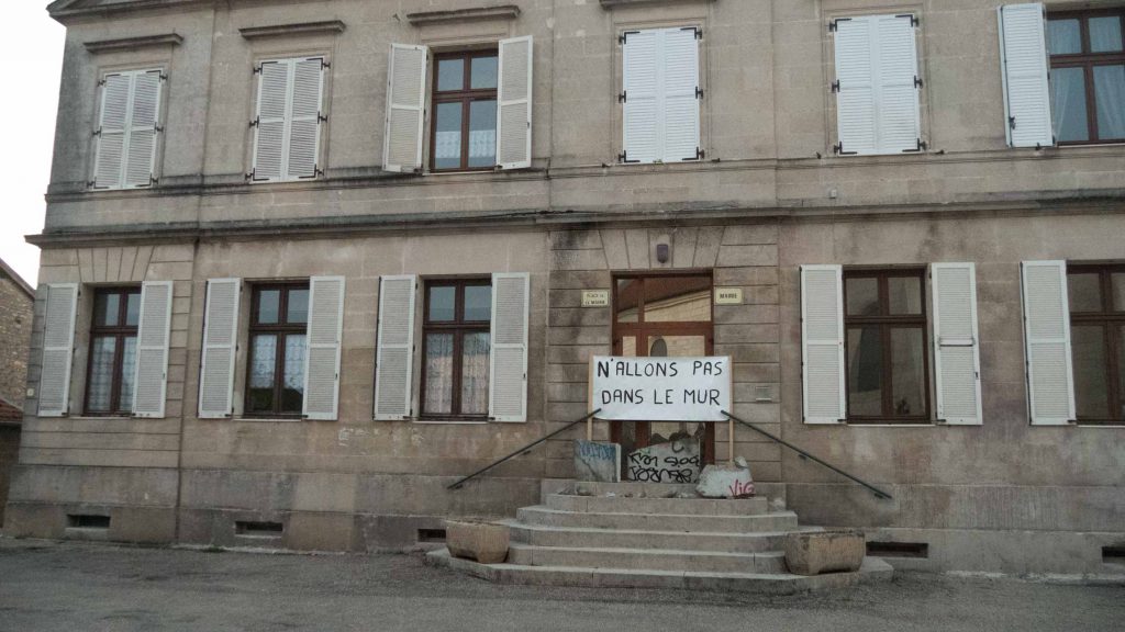 C’est donc à 6h dans la brume opaque qui n’est pas sans rappeler les méthodes de l’Agence, qu’on eût ce matin le plaisir de découvrir des pans de murs déposés devant cette mairie.
