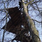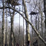 9h : Le groupe arrive au premier arbre, un camion de gendarmerie est stationné au pied, deux gendarmes mobiles en sortent. Le groupe se scinde en deux, les premier.e.s vont les occuper, les second.e.s font monter un sac aux ami.e.s. Le groupe repart vers l’autre arbre.