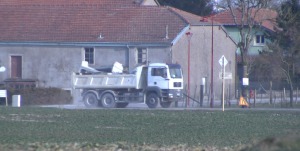 9h30 : Une pelleteuse et un gros camion de transport viennent d’être aperçus quittant l’ANDRA et en direction du bois.