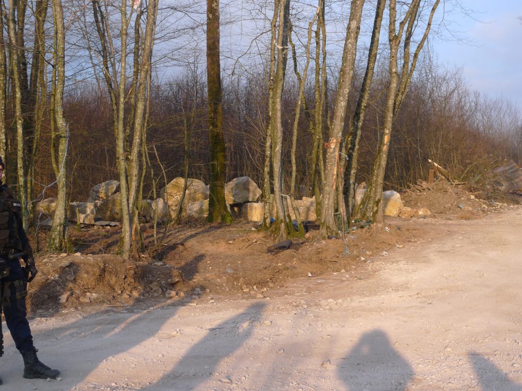 Aujourd’hui, lundi 26, grâce à un trou de 24h entre deux arrêtés d’interdiction de circulation, des copain.e.s ont pu se promener « librement » (c’est-à-dire après un contrôle d’identité et escortés par des gendarmes) sur la voie romaine, le long du bois Lejuc. Le nouvel arrêté d’interdiction de circulation reprend le mardi 27 à 6h du matin et dure jusqu’au 5 mars.