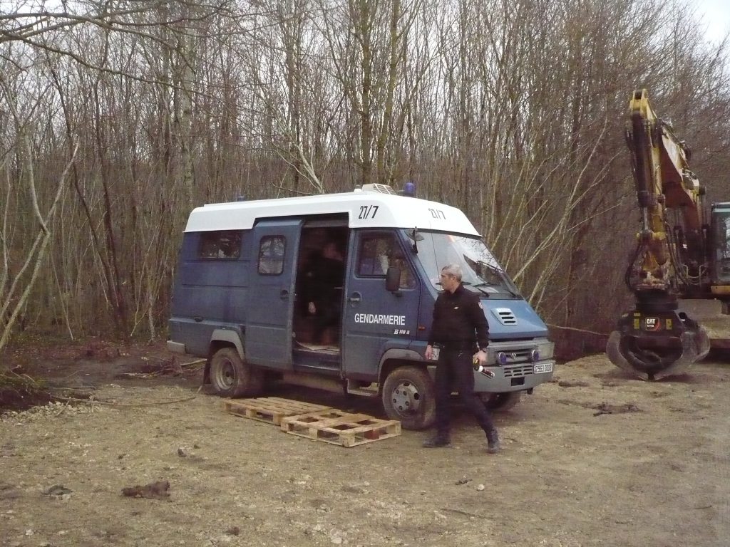 Donc les hiboux ont décidés de couper un pneu de la pelleteuse qui était là, et aussi de piller l’intérieur. Quelque chose à heurté le fourgon de la gendarmerie et les hiboux se sont envolés ailleurs.
