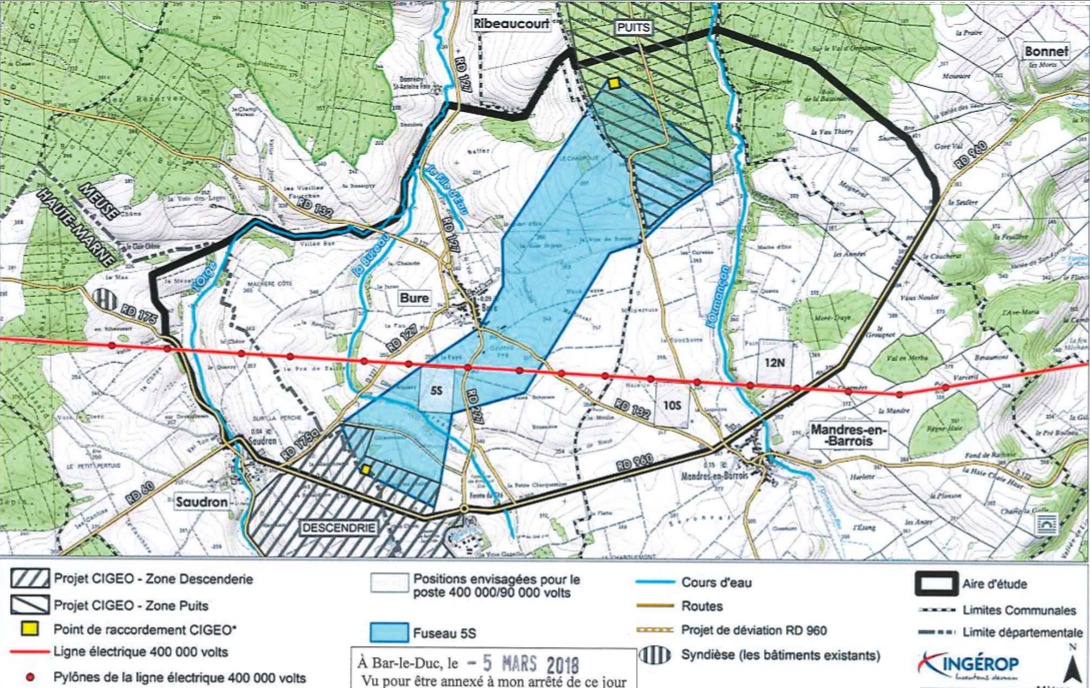 Son rôle dans le projet Cigéo est de fournir l’énorme quantité d’électricité aux infrastructures de l’ANDRA en l’acheminant via des lignes à haute tension aériennes et enterrées et en l’abaissant en tension via un énorme transformateur à proximité des installations. C’est donc un chantier industriel de grande ampleur qui est dévolu à RTE dans le sud meusien.