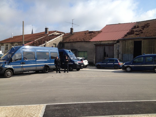Il fait froid. Je fume des clopes, une chape de brume posée sur la rue devant moi, éclairés par les beaux lampadaires neuf payés par l’ANDRA. Même lumière blanche aveuglante que celle des flics.Suis en pantoufles, demande à aller chercher mes chaussures. Celui posté à côté de moi refuse. Refuse aussi encore de me dire ce qui se passe. Part à la gendarmerie. En contournant la maison, vois deux copaines dans la cuisine éclairée, l’air hébété, la pièce est envahie de flics. Colère. Je voudrais leur crier un mot, quelque chose, mais quoi ? Le temps d’atteindre le véhicule, je compte 17 fourgons et au moins autant de voitures. Flics en bleu, flics en noir, flics en civil.