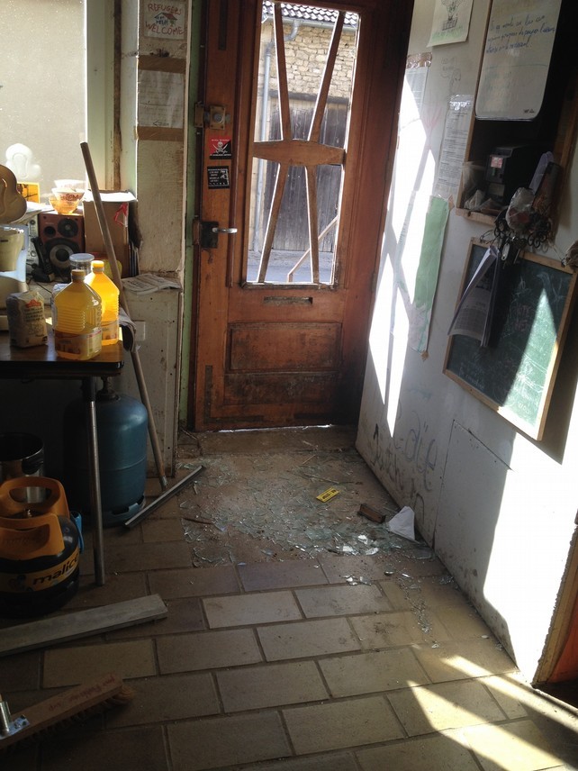 Une opération comme une perquisition d’ampleur laisse des traces, et bien plus que des bris de verres, un atelier retourné, des portes et des vitres fracturées, d’énormes quantités de matos collectif ou personnel saisi. Ça laisse des traces en nous, ça nous touche, ça nous brise le coeur là où on vit, on dort, on se réveille, on vibre, on mange ensemble… Dans des espaces qui sont notre quotidien, un cocon, là où on se sent protégé malgré l’omniprésence policière. D’un coup ils sont là, à agiter leur sale gueule juste notre nez, alors qu’on se réveille. Ils sont là, au coeur d’un lieu inébranlable et inviolable depuis plus de 12 ans.