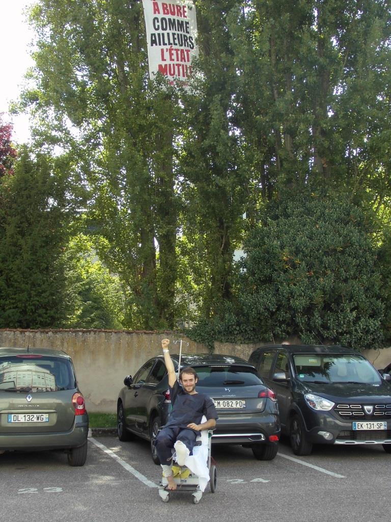 Une fois que j’ai pu dire que j’étais membre de la collégiale de l’association Bure Zone Libre, j’ai pu circuler avec eux. J’ai vu où était les copain-e-s, certain-e-s allaient bien, d’autres partaient en contrôle d’identité, certain-e-s dans leur lit à invectiver les flics.